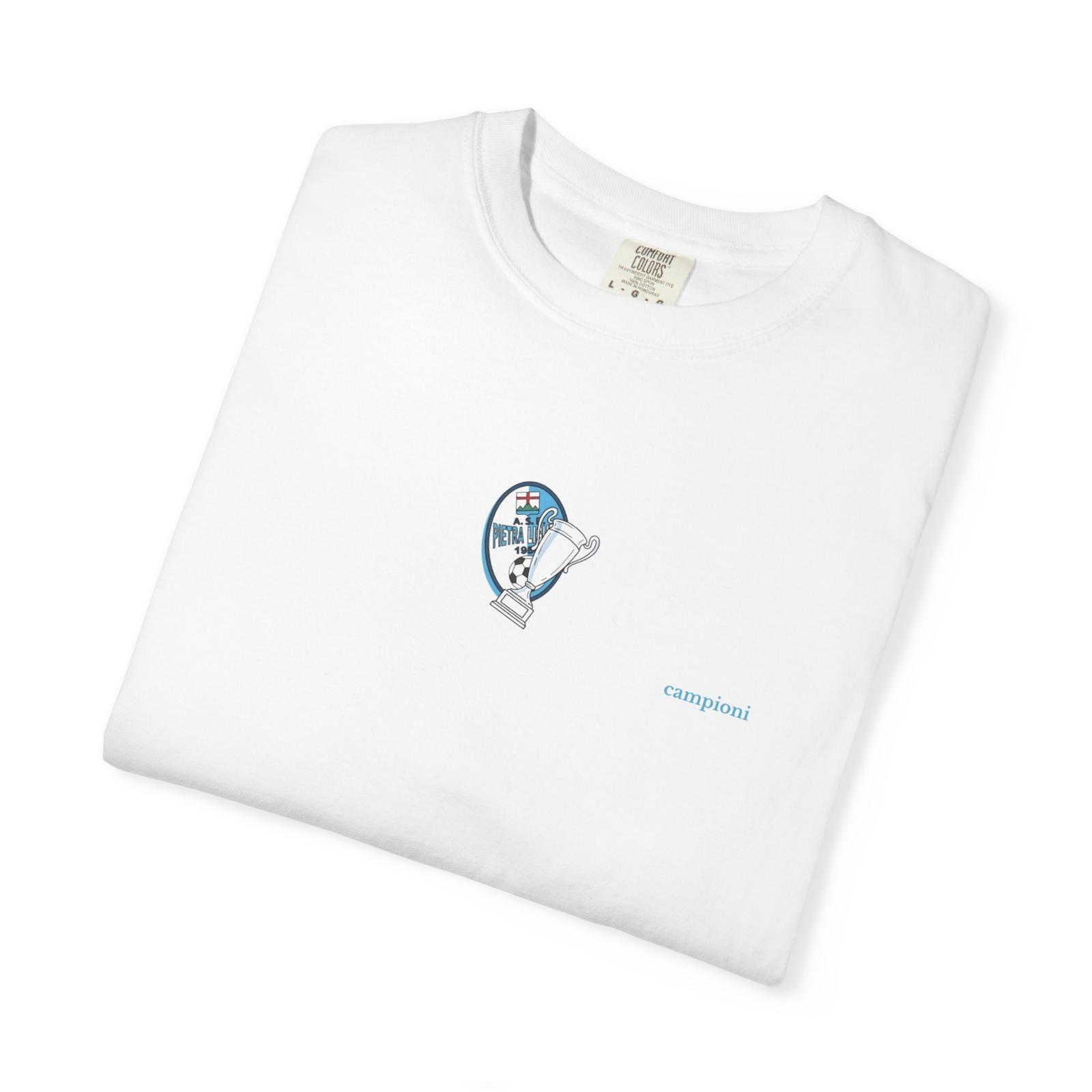 La Maglia Pietra Ligure Calcio celebrativa è finalmente disponibile su Paintees per tutti i tifosi biancocelesti. Realizzata in collaborazione con Tackle TV, questa t-shirt esclusiva celebra la storica vittoria della Coppa Italia d’Eccellenza Liguria.